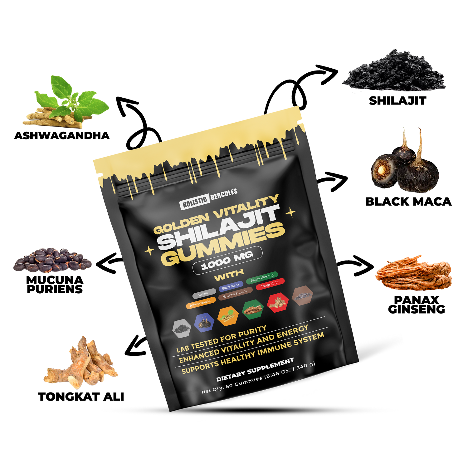 Our gummies combine Shilajit and Tongkat Ali to naturally promote healthy testosterone levels, helping restore your energy, stamina, and masculinity.